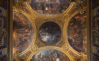 The restoration of the ceiling of the Diana room, started in October 2024 is almost finished, revealing the restored splendor of its painted vault and stucco. Discover the behind-the-scenes look at the prodigious work of the painting restorers.