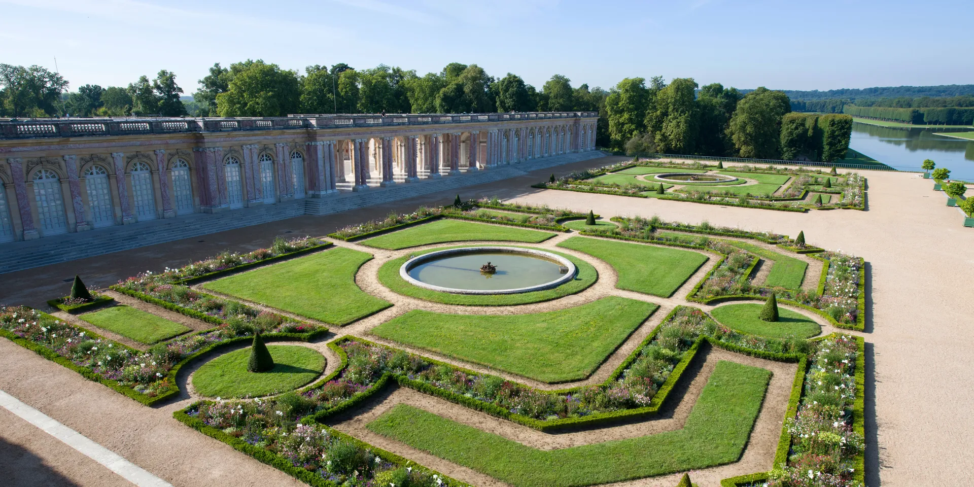 Situated within view of the northern end of the Trianon-sous-Bois Wing, this fountain, also known as the Cascade, was built by Jules Hardouin-Mansart in 1703, decorated with many-hued marble and topped off with lead figures sculpted by Mazière, Le Lorrain, Hardy, Poirier and Van Clève.