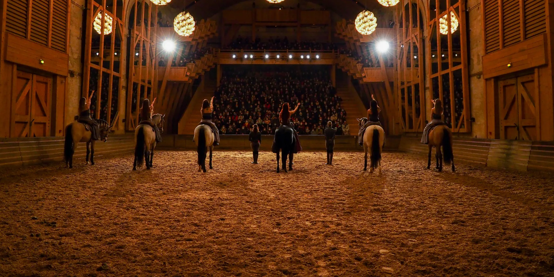 Emblematic of the Academy, La Voie de l'écuyère presents Haute École dressage in the service of sensitivity and emotion. The narrative thread remains faithful to the spirit of the original creation: the scenes evolve with the expertise of the riders and horses over time.