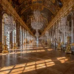 The Palace of Versailles never played the protective role of a medieval stronghold. Beginning in the Renaissance period, the term "chateau" was used to refer to the rural location of a luxurious residence, as opposed to an urban palace. It was thus common to speak of the Louvre "Palais” in the heart of Paris, and the "Château” of Versailles out in the country. Versailles was only a village at the time. It was destroyed in 1673 to make way for the new town Louis XIV wished to create. Currently the centrepiece of Versailles urban planning, the Palace now seems a far cry from the countryside residence it once was. Nevertheless, the garden end on the west side of the Estate of Versailles is still adjoined by woods and agriculture.