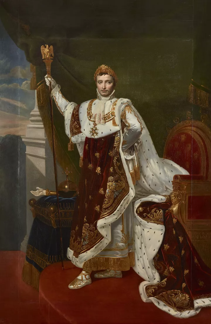 The Coronation, which was located in this room and actually shows the coronation of Empress Josephine, was moved from Versailles to the Louvre in Paris in 1889. It has since been replaced by a second copy that David painted in Paris and then in Brussels in 1808-1822, for a group of American businessmen. The painting was shown across the United States and Europe throughout the 19th century, before Versailles acquired it in 1947. It was placed in this room the following year, thus recreating this beautiful space as imagined by Louis-Philippe.