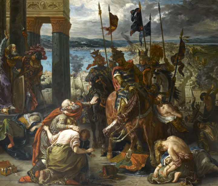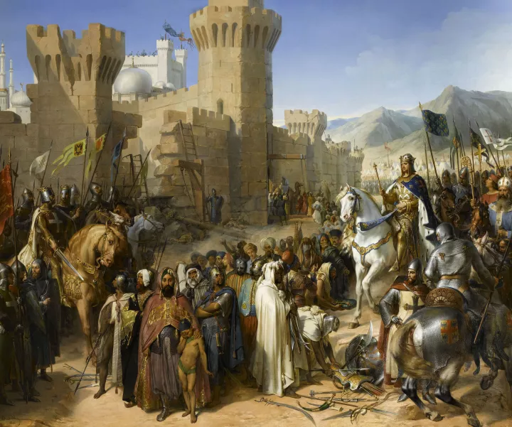 This project was above all Louis-Philippe's tribute to the Legitimist, “immemorial” nobility, who shunned his regime and whose support he tirelessly sought. This old Nobility of the Sword was the soul of the Crusades, going to liberate Christ’s tomb in Jerusalem from the end of the 11th century to the end of the 13th century, and thereafter ensuring pilgrim routes were safe. The depiction of the crusades appeared quite early in the king's Versailles project, but the room was only created following Sultan Mahmud II's donation of the Rhodes Door in 1836.