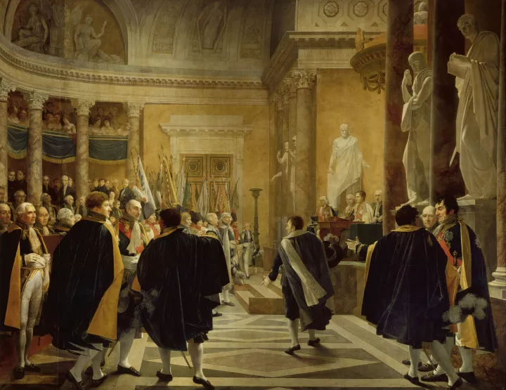 At Versailles, the king sought to honour the Empire in a number of spaces on the ground floor of the Palace’s South Wing, under the Gallery of Battles. He displayed most of the large paintings Napoleon commissioned for his political communications, and those that decorated the imperial residences. The 13 Empire rooms retrace year after year, campaign after campaign, the incredible destiny of a young artillery officer who became one of the masters of Europe in a few short years.