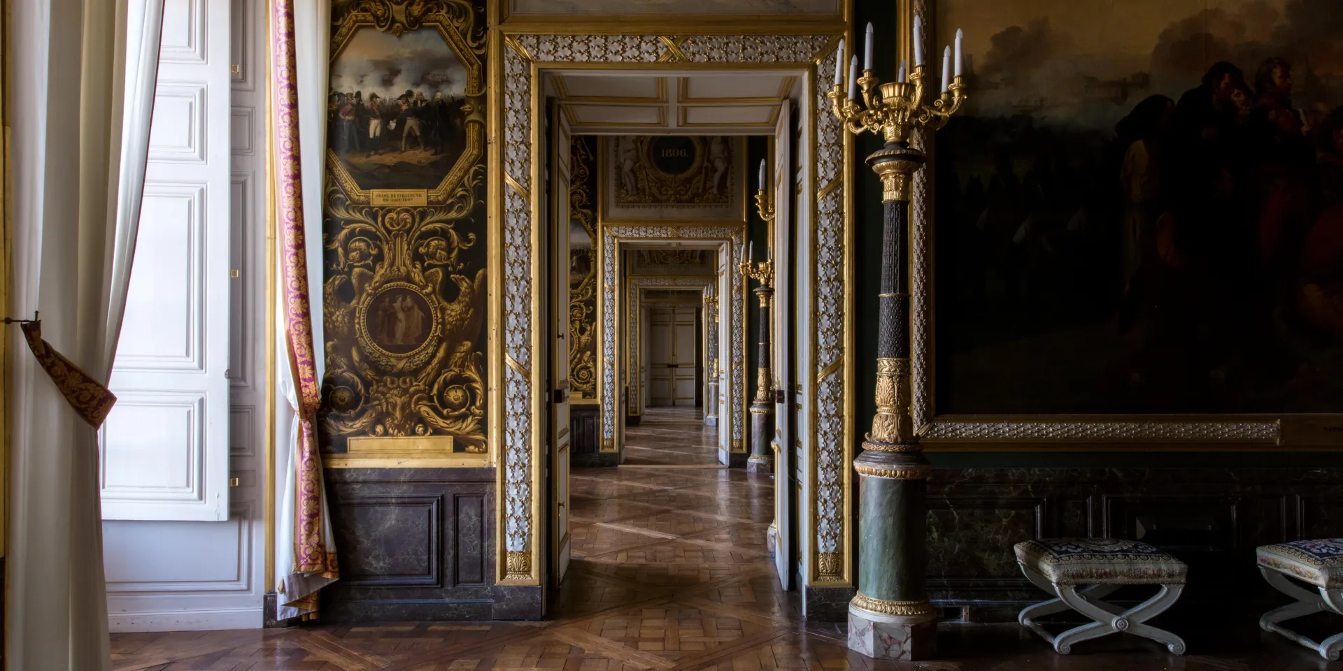 The paintings are complemented by decorative compositions created under the direction of painter Jean Alaux, helping to immerse visitors in the atmosphere of the time. Today, a beautiful set of Empire furnishings and objets d’art from the dismantled imperial residences - the Palais des Tuileries in Paris and the Château de Saint-Cloud - deepen this immersion.