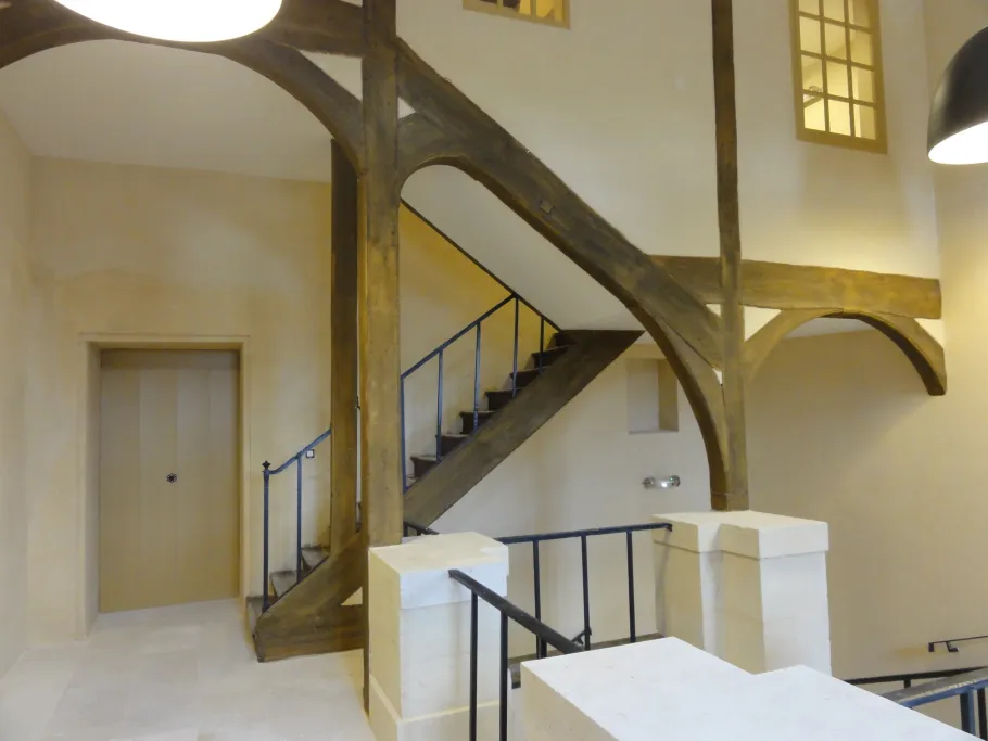 The restoration of the Grand Commun has revealed the 17th-century structures and the building’s substantial heritage value. Apart from the restoration of the key roof timbers and the consolidation of the moulded ceilings, the most spectacular renovation relates to the six grand staircases.