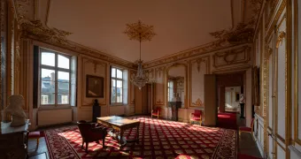It was also here that the queen gave birth, in public, to the Princes and Princesses of the Realm. The word “public”, however, is misleading, since in reality very few people were admitted to the bedchamber while the queen was giving birth. Only doctors, ladies in waiting, the governess of the Princes and Princesses of the Realm, the Princesses of the royal family and a few members of the church were allowed to enter. The rest of the Court waited in the other rooms in the Apartment, whose doors were all symbolically left open. The queen was placed on a labour bed brought in specially, and was hidden behind a screen or canvas tent. After giving birth she was placed back in her own bed while the whole court filed through to present their compliments. Nineteen Princes and Princesses of the Realm were born here between 1682 and 1786, and two queens died here: Maria-Theresa in 1683 and Marie Leszczyńska in 1768.