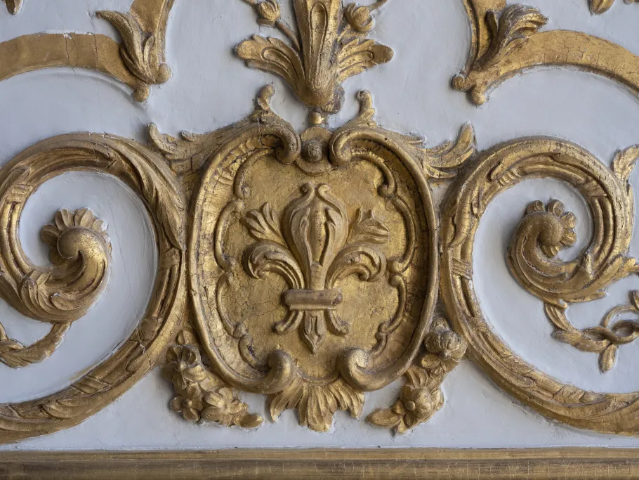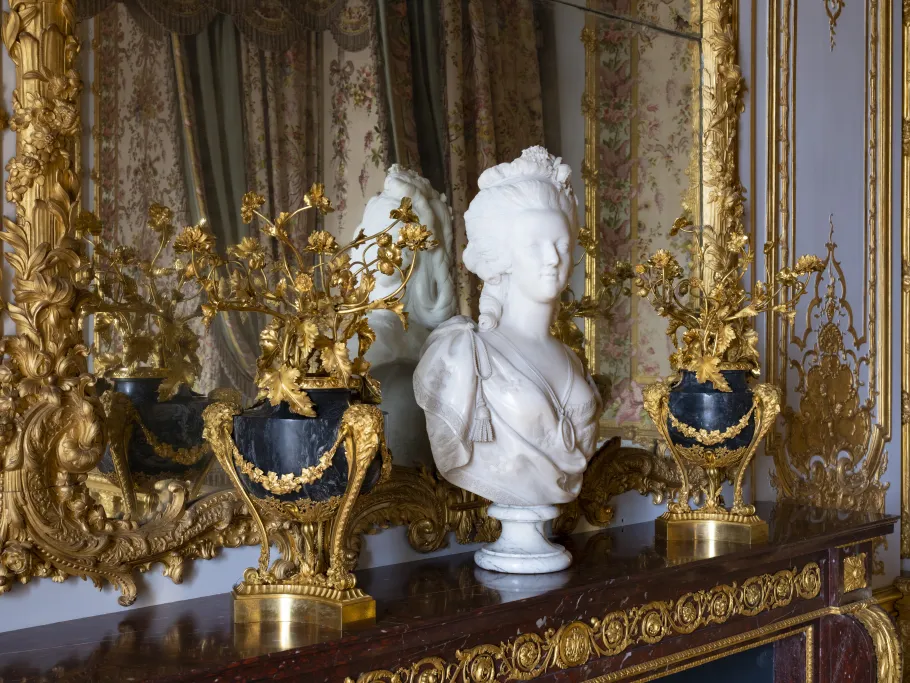 The decoration in the room still reflects the three queens who once occupied it. The partitions on the ceiling date back to the reign of queen Maria-Theresa, while the greyscale painting by Boucher and the wood panelling were added for Marie Leszczyńska. These elements survived the reign of Marie-Antoinette, who replaced the furniture and fireplace and put up paintings of her mother Empress Maria-Theresa and her brother, Emperor Joseph II.