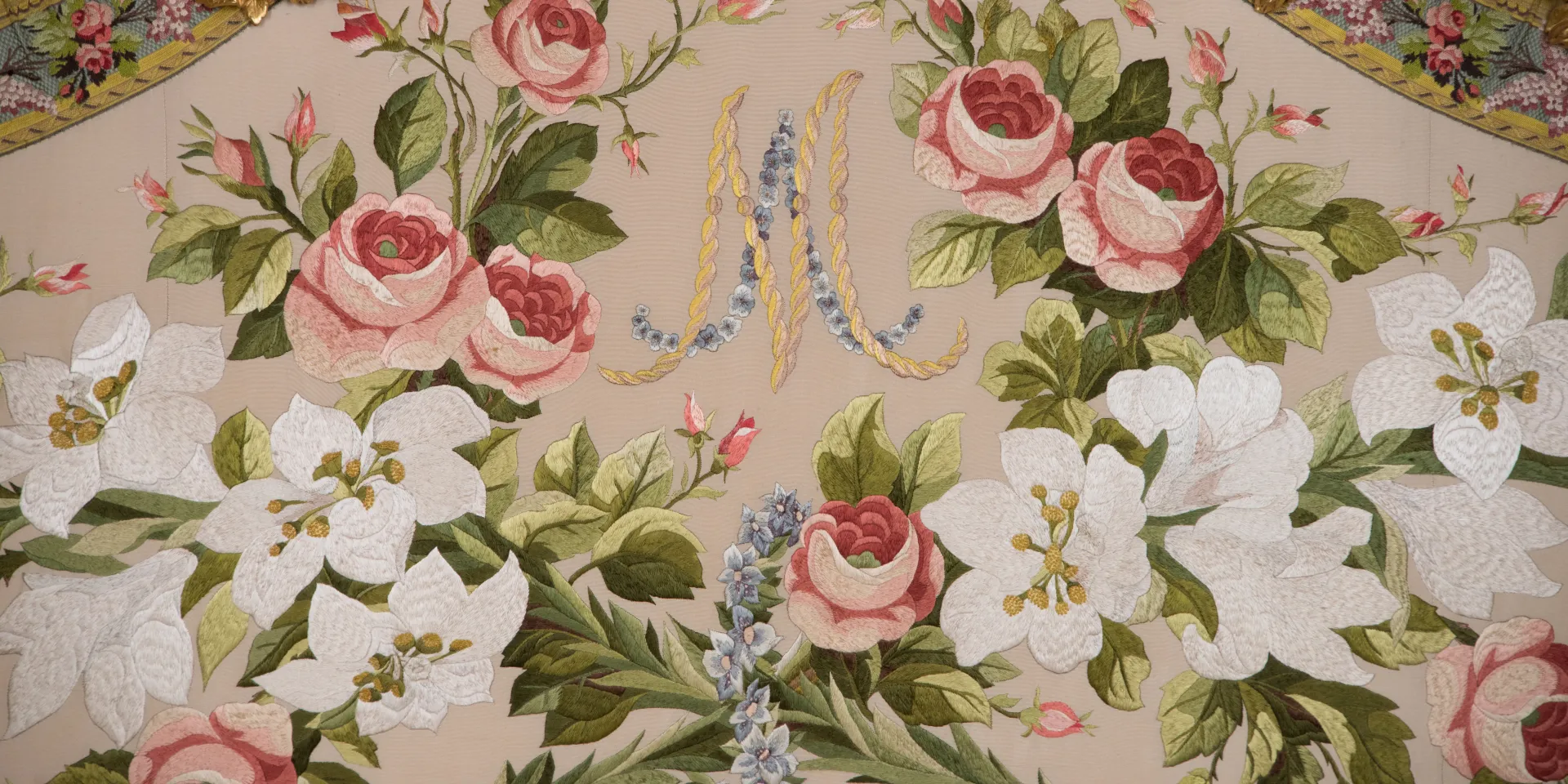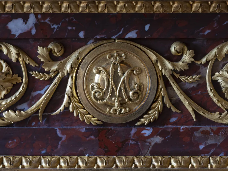 The jewellery cabinet commissioned to Schwerdfeger by Marie-Antoinette has been placed in its original position in the alcove to the left of the bed. Other pieces of furniture which were lost have been replaced by similar items, such as the sofa delivered for the Countess of Provence, the queen’s sister-in-law. The fabrics hanging on the bed and walls were re-woven in Lyon using the original patterns and the bed and balustrade have been remade using ancient documents.