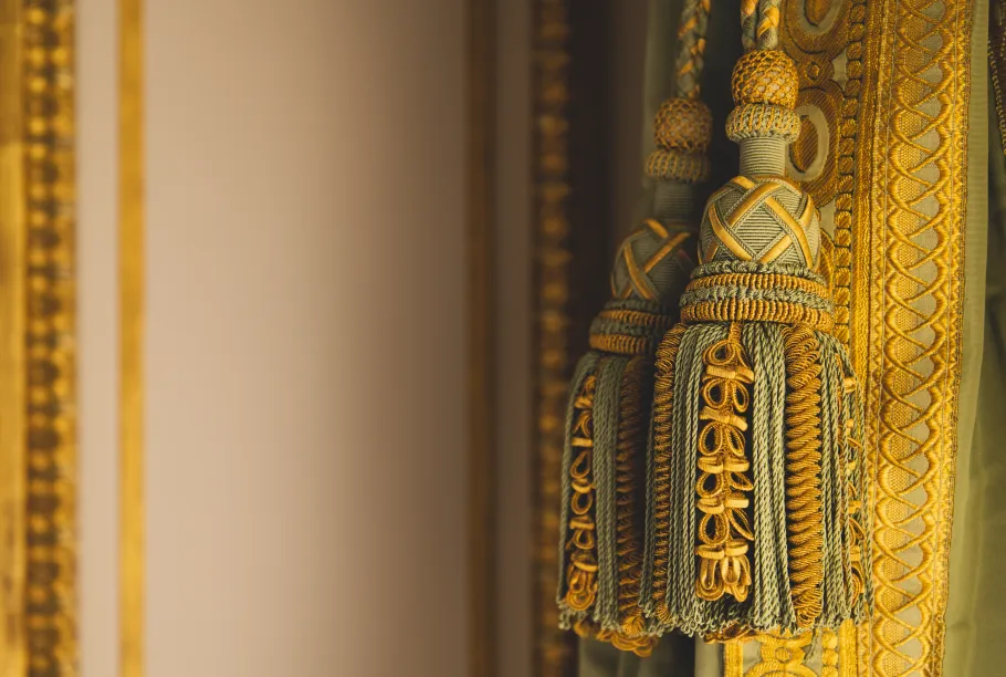 The Bedchamber is the most important room in the apartments and is where the Queen spent most of her time. It was where she slept, often with the king, and in the morning she received guests here during and after her toilette which, like the King’s getting-up ceremony, was a courtly affair controlled by strict etiquette.