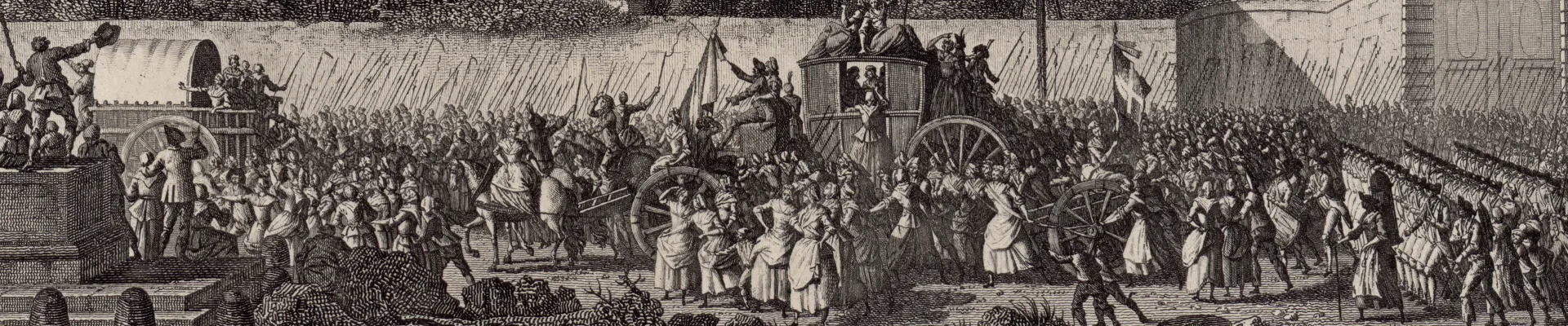 Tensions had been rising since the opening of the Estates General in May, and on 14 July the Bastille was stormed. On 1 October a banquet was held in the Royal Opera House. The King’s Guards had decided to hold the banquet in honour of the arrival of the Regiment of Flanders, and a sumptuous feast for 210 guests was laid out in the Opera House. Wine flowed in abundance and toasts were made to the royal family, who were cheered upon their arrival. As they stepped out onto the stage, the orchestra played O Richard, O mon roi de Grétry. In the tense climate outside the doors, many considered such strident demonstrations of monarchic loyalty the ultimate act of provocation by the monarchy, and outrage spread through Paris. Gazettes portrayed the banquet as an orgy and claimed the tricolour cockade had been trampled underfoot, and that some had even turned it over to show only the white side, the symbol of the king. Organising a banquet when the people were going hungry was a step too far. Marat, Danton and Desmoulins rallied the people to march on Versailles.