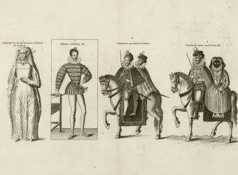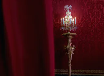 Dinner at the Royal Table was held at 10 pm in the queen’s or the king’s antechamber, according to the period. The table was laid and the king’s chair put in place. Folding stools were placed at the end of the table for the dinner guests. A small number of high-ranking ladies sat in the front row of the audience. Behind them stood the other courtiers and those passing by.