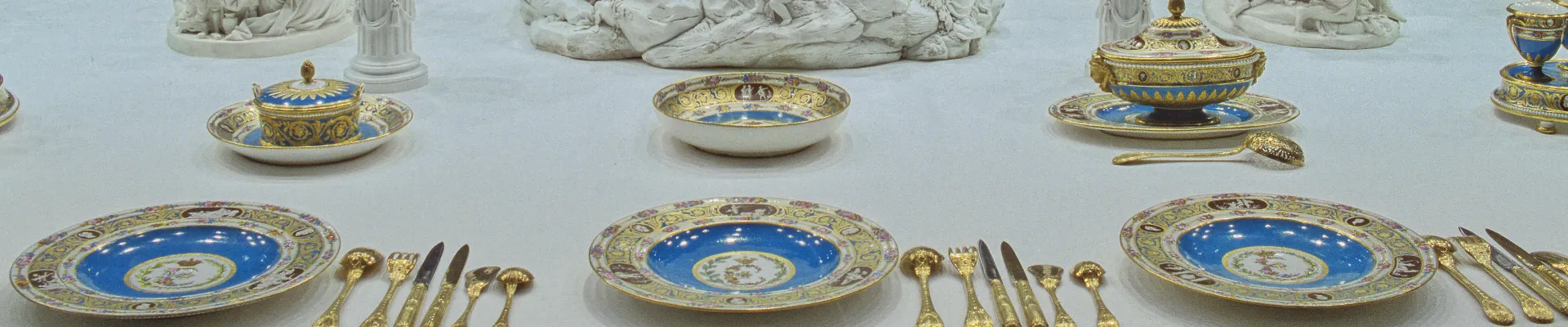 To restore a sense of luxury to life in the Court, Louis XVI and Marie-Antoinette later introduced “society meals” to which 40 or so worthy guests were invited according to their station or merit. These dinners were held in the dining room in the new rooms in the Private Apartment, where the finest porcelain tableware from Sèvres was used in alternation with silver tableware.