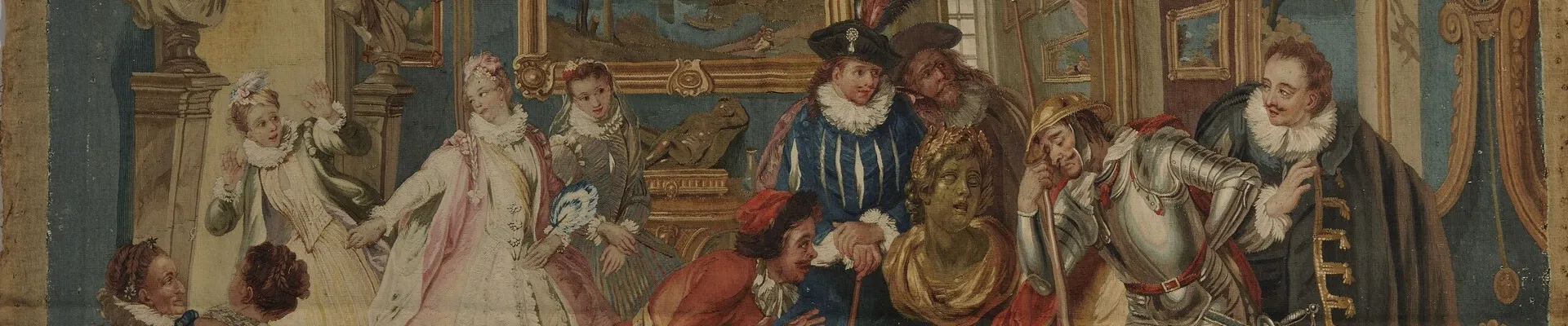 Spanish literature was hugely popular in France, widely translated and emulated by French authors. Cervantes’ works were translated into French during his lifetime, with immediate and lasting success. Cervantes is present in all of the royal libraries, and Don Quixote provided the subject matter for one of the finest series of tapestries produced at the Gobelins royal manufactory in the 18th century.