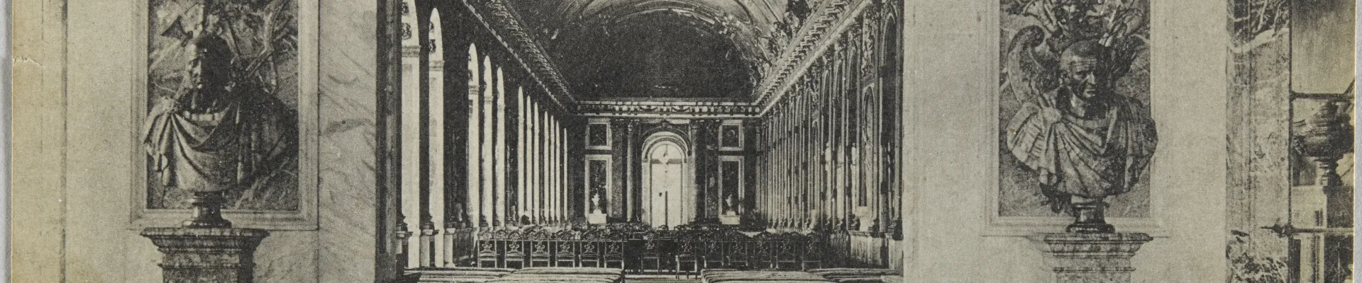 Almost half a century after the proclamation of the German Empire, Clémenceau, the Prime Minister of France, savoured his revenge on 28 June 1919, when the defeated German delegates signed the peace treaty in the Hall of Mirrors, in the same place where Germany had previously proclaimed its empire. The First World War was over. A Louis XV bureau had been placed in the centre of the hall beneath the emblematic painting of Louis XIV titled The King governs by himself. The session lasted 50 minutes. The solemn occasion, which was not celebrated with decorum or music, was attended by 27 delegations representing 32 powers. The four representatives of the principle allied powers were at the table: Clémenceau for France, Wilson for the USA, Lloyd George for Great Britain, and Orlando for Italy. The German delegation was composed of Müller, the Minister of Foreign Affairs, and a jurist, one Doctor Bell.
