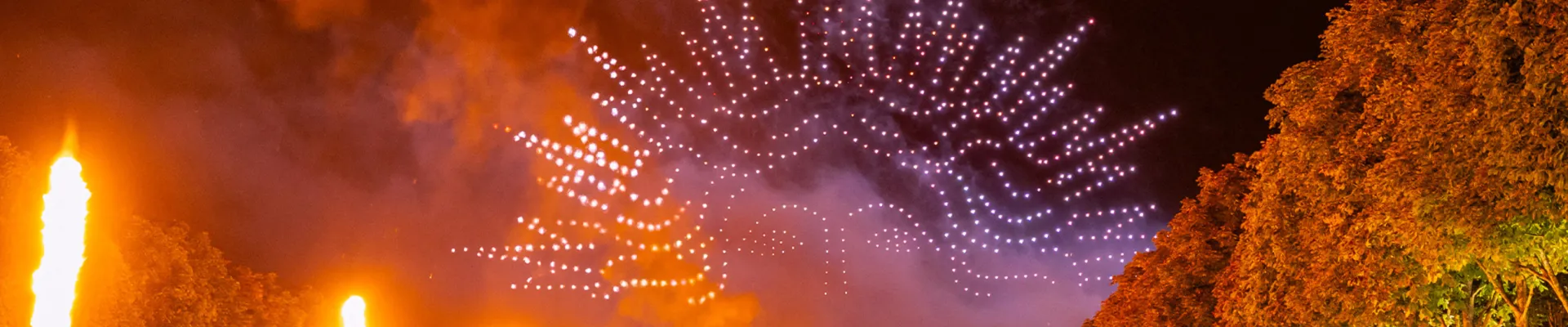 This surprising dance in the sky that follows the rythm of the music will be concluded by a grand finale combining drones and pyrotechnics, the highlight of this enchanted evening.
