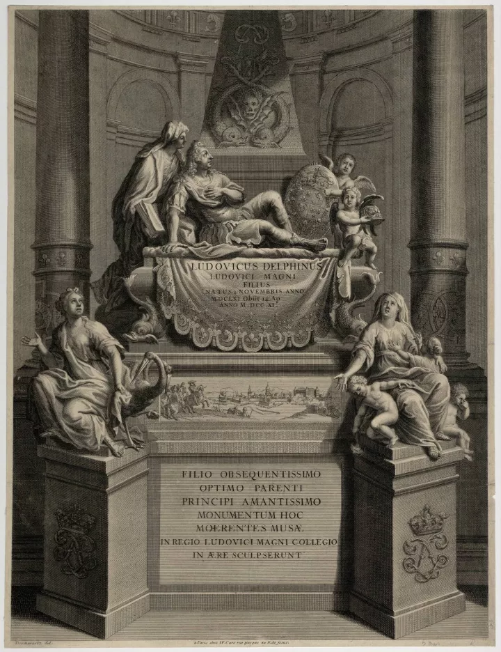 This heir to the crown died prematurely of smallpox in April 1711 at the château de Meudon, four years before his father. His eldest son, the Duke of Burgundy, died a year later, leaving behind two children. The eldest child, the two-year-old Duke of Anjou, became the dauphin and acceded to the throne in 1715 after the death of Louis XIV under the name Louis XV. Although the Grand Dauphin did not reign, he remains a key figure in the Bourbon dynasty: grandfather to Louis XV, great-great-grandfather to Louis XVI, Louis XVIII and Charles X, and father of Philip V, first sovereign of the Spanish branch of the Bourbons, which still reigns to this day.