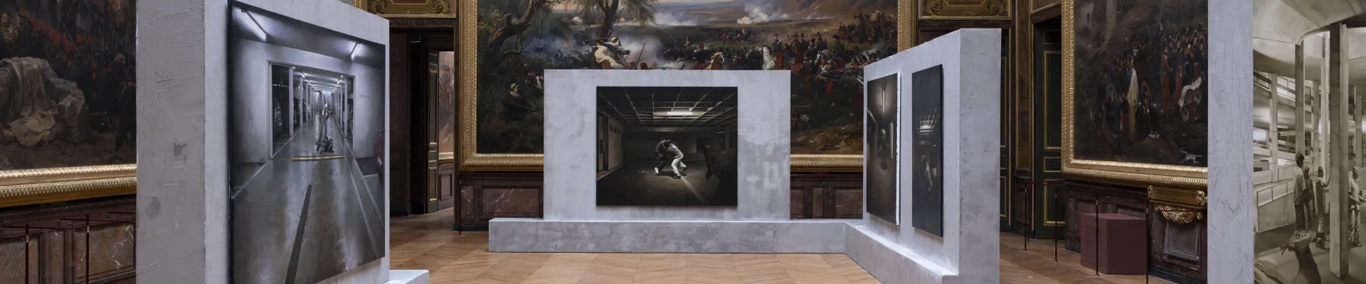 The exhibition of works by Guillaume Bresson was held in the Africa Rooms of the Palace of Versailles. These rooms, with their grand decorative schemes installed under Louis-Philippe, showcase huge paintings depicting battles of the colonial conquest of North Africa in the 1830s and 1840s. In this counterpoint between the historic paintings, notably by Horace Vernet, and works by Guillaume Bresson, battlefields and urban guerillas were contrasted and challenged the visitor to consider how violence is presented in painting.