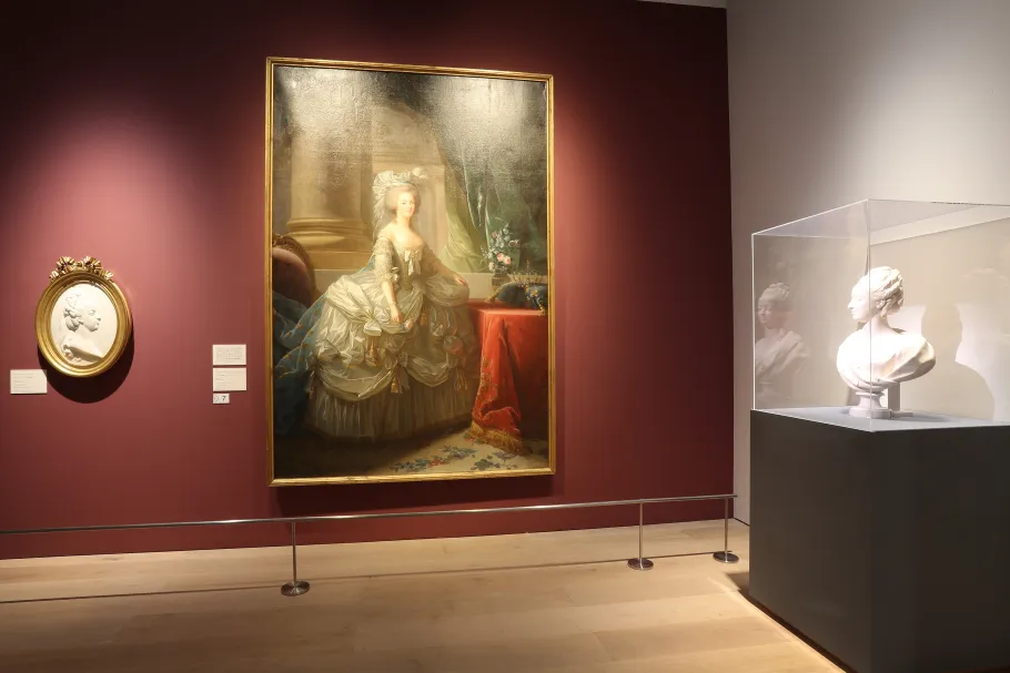 Portraits of the queen and members of the royal family by the greatest portrait artists of the Court – notably including François-Hubert Drouais, Louis Michel Vanloo and Joseph Siffred Duplessis – will allow visitors to become familiar with the circle in which Marie-Antoinette lived in France, such as King Louis XV and the Counts of Provence and Artois. Official and more personal portraits, including the one of her Children of France, by Élisabeth-Louise Vigée-Lebrun, will be exhibited. Aided by the royal administration of the Crown Furniture Store-House, Marie-Antoinette assembled around herself the most talented craftsmen to create furniture and precious objects, such as the woodworker Jean Henri Riesener, cabinet-makers such as Georges Jacob and bronze workers like Pierre-Philippe Thomire, several of whose creations are exhibited. Last but not least, sculpted busts and pieces from the royal porcelain factory in Sèvres will complete the collection.