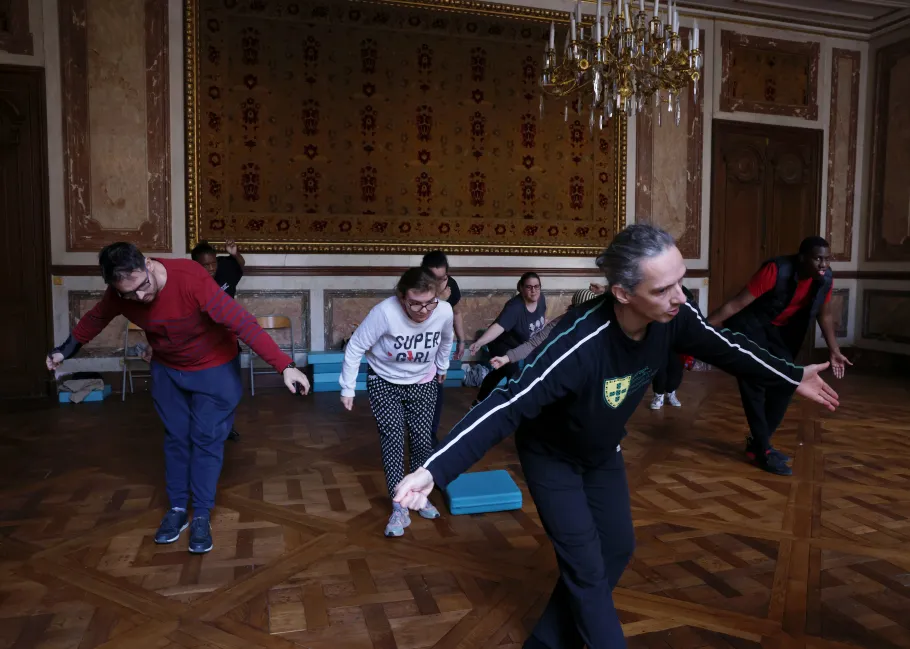 Seven people from ESAT Avenir Apei, along with baroque dance choreographer Guillaume Jablonka from the Divertimenty company, performed in the Lower Gallery of the main building.