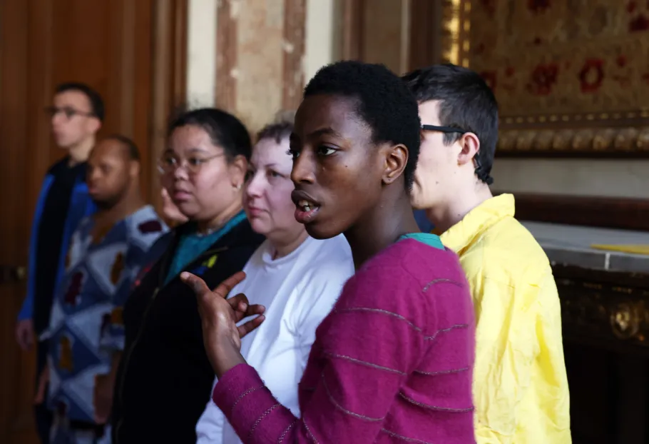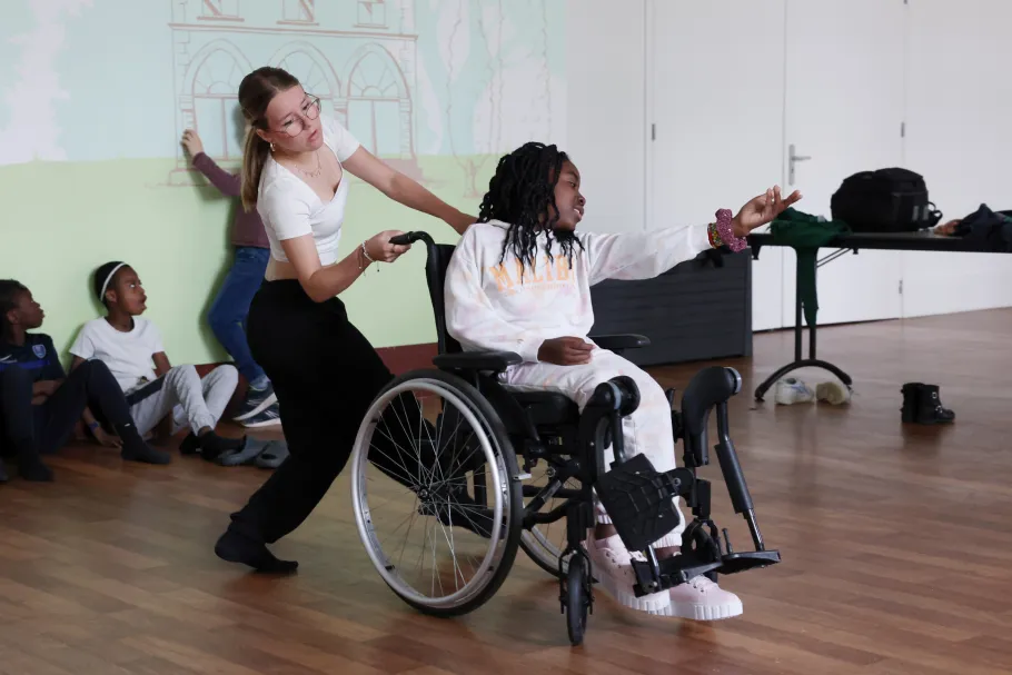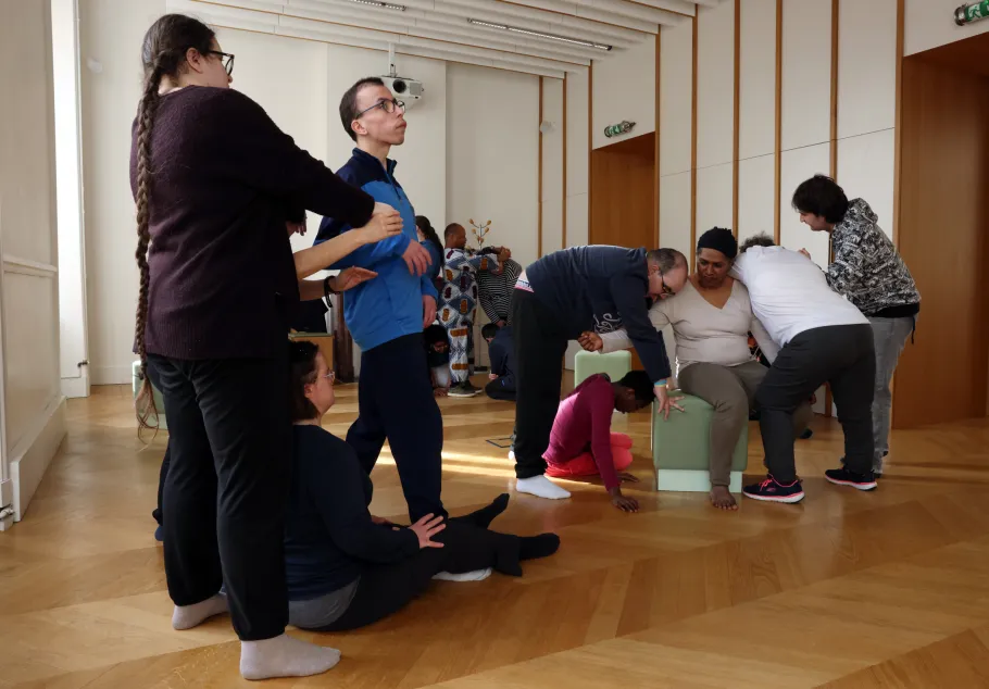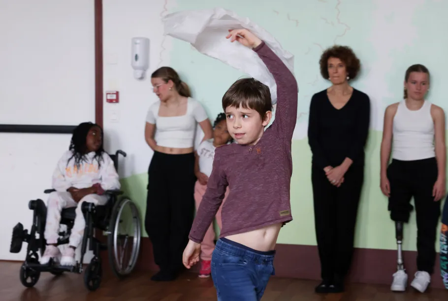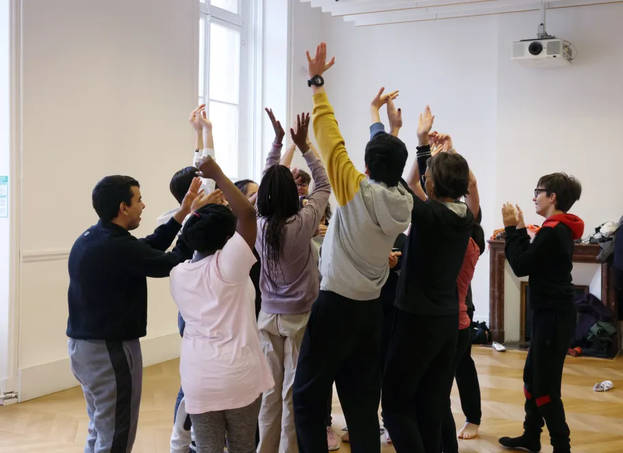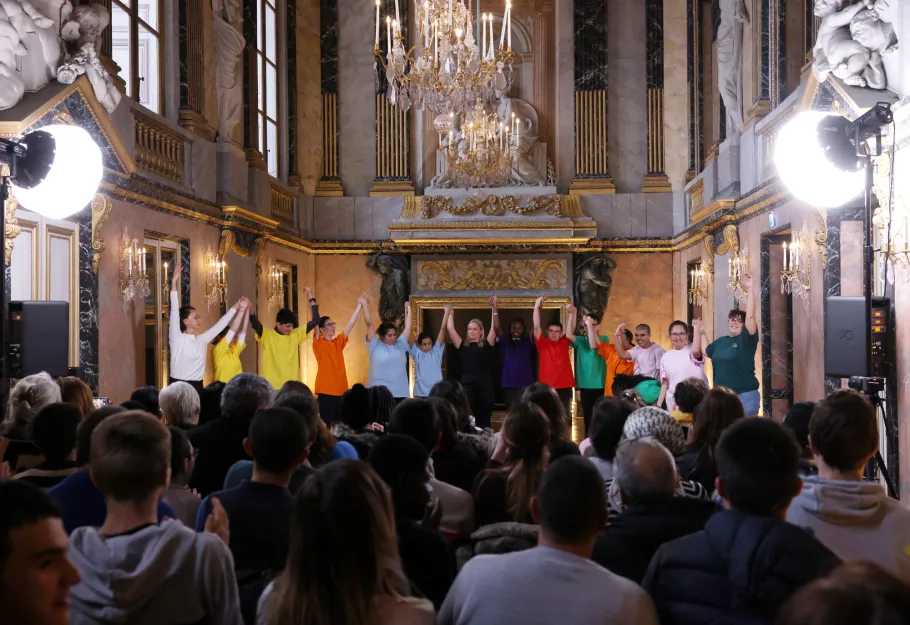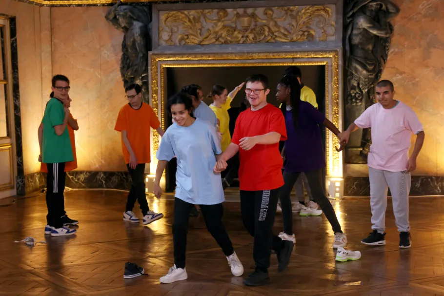 Twelve young people from the Institut Médico-éducatif (IME) La Rencontre de Trappes, accompanied by dance therapist Alvaro Morell, animated the high hall of the Royal Opera with their contemporary creation on Monday, December 18, 2023.
