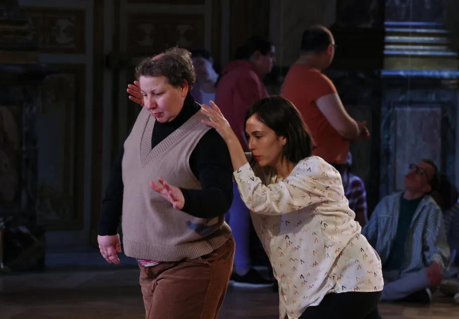 Twelve adults from SAJ La Rencontre and the Résidence Villa du Cèdre of the Delos association, accompanied by choreographer Agathe Pfauwadel from the Pasarela company, imagined a dreamlike dance in the Hercules Room. Their movements were set to the rhythms of violist Jules and violinist Thérèsa.