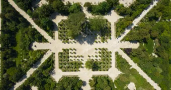 The first stage of the site restoration took place from January 2020 to June 2020 and consisted in replanting around a hundred tulip trees in the central square of the grove. We selected the trees from the nursery and replanted them at the age of 15, when already being several meters high. First, we needed to achieve an important earthwork in order to provide topsoil adapted to the tulip trees and restore the alleys and the central esplanade.