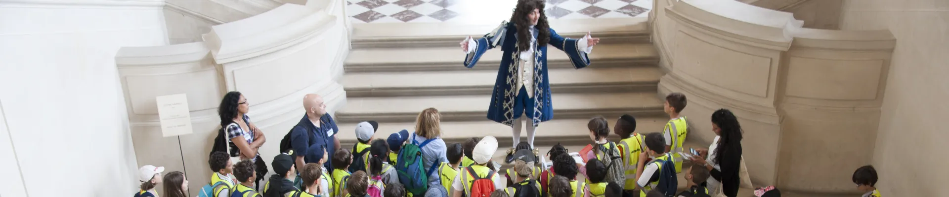 The range of tours, workshops and tools we offer to young audiences aims to showcase Versailles in all its diversity, to develop children’s interest in history and the arts, and to unite them around a universal heritage. This mission to promote passion for and pass on culture is one of our key priorities, in our effort to maintain the “great chain” that links schoolchildren to the great scholars.