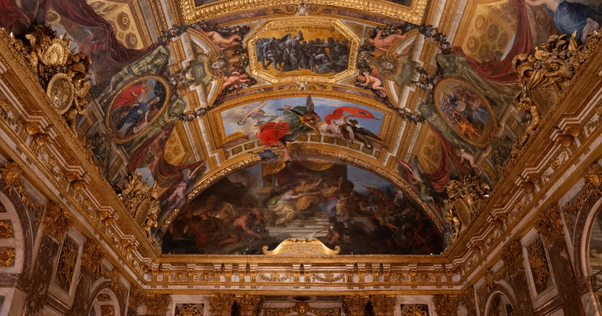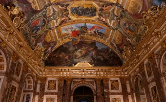The ceiling of the Hall of Mirrors, on the side of the Salon de la Guerre
