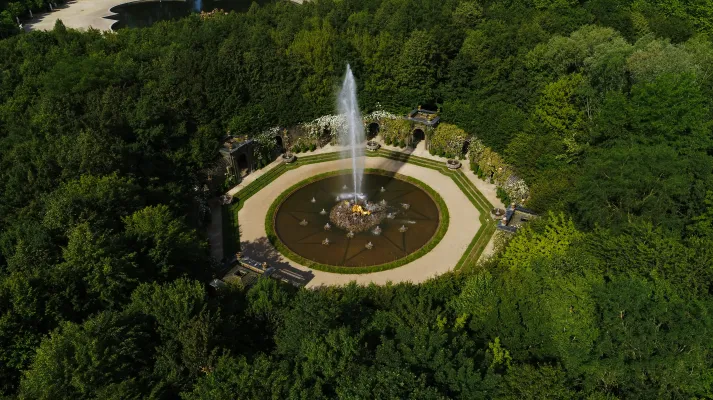 During the Night Fountains Show, the gardens of Louis XIV offer an astonishing visit with sound and visual effects as night falls. Pools and groves are orchestrated and sublimed, coming to life before the visitor's eyes with fountains and lights and culminating with a dazzling firework display.